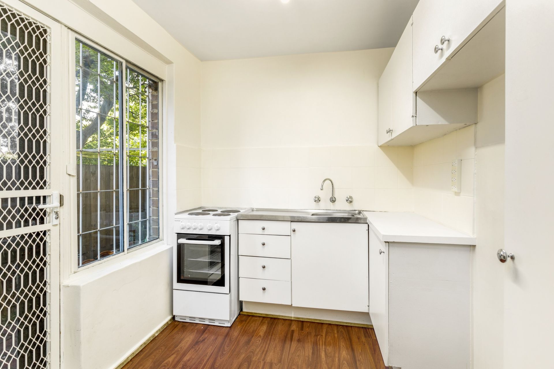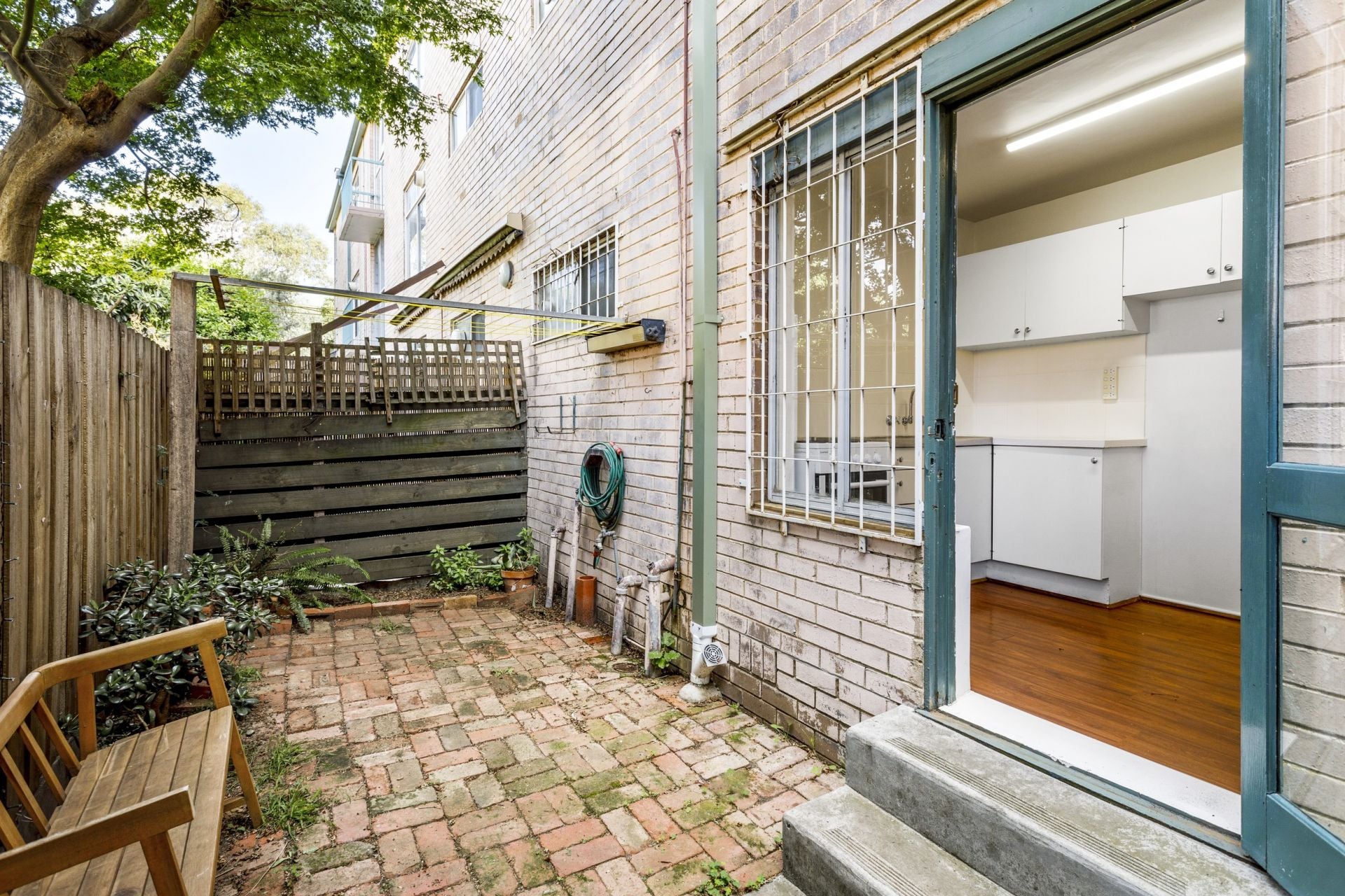 A lovely leafy outlook is enjoyed from all window aspects throughout the apartment that offers a large living room, robed bedroom, bathroom with laundry facilities, cute kitchen that leads outdoors to your very own garden.