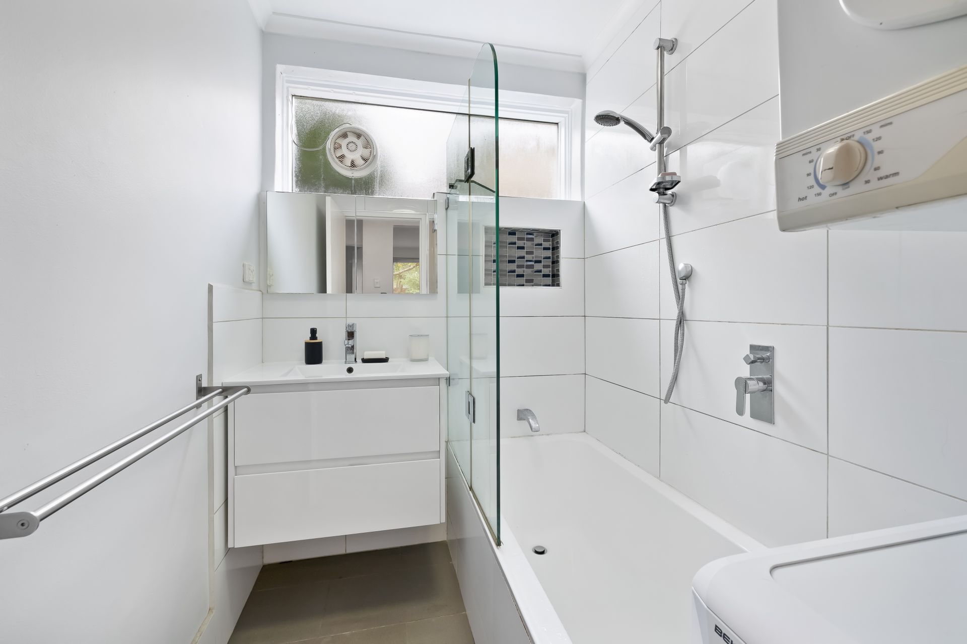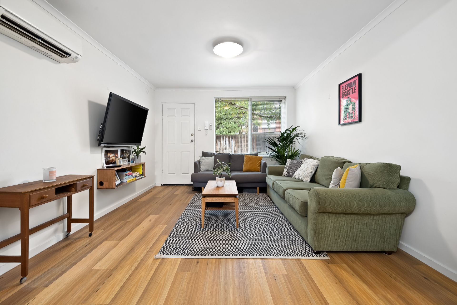 A stylish yet relaxed interior is complete throughout its light filled floorplan that showcases a well-planned kitchen, generous living room and nice bathroom with laundry facilities shared by the two bedrooms. Added comforts of split system heating/cooling, dishwasher, bath tub, mirrored built in robes and 2 car parks complete this neat package.