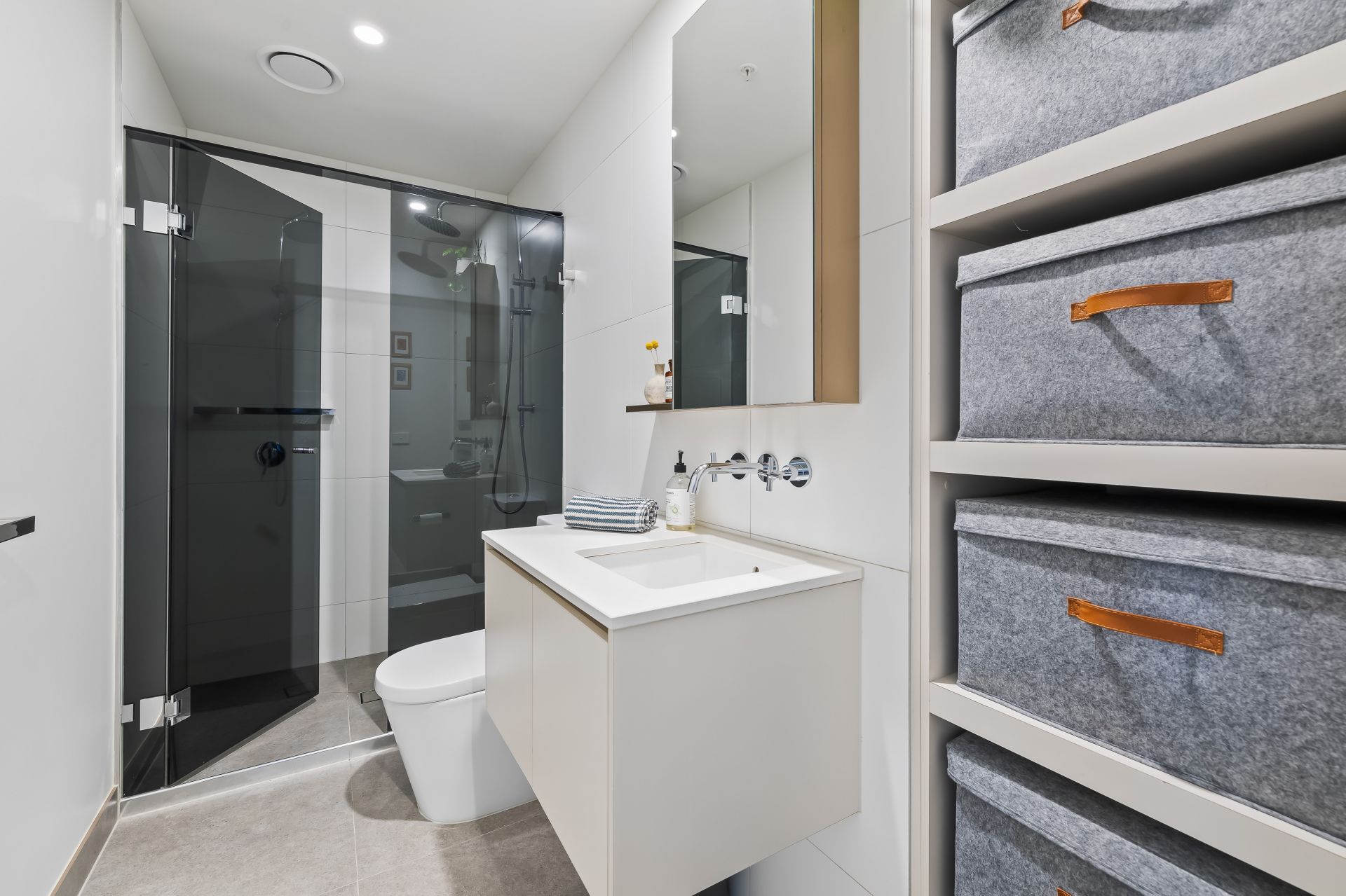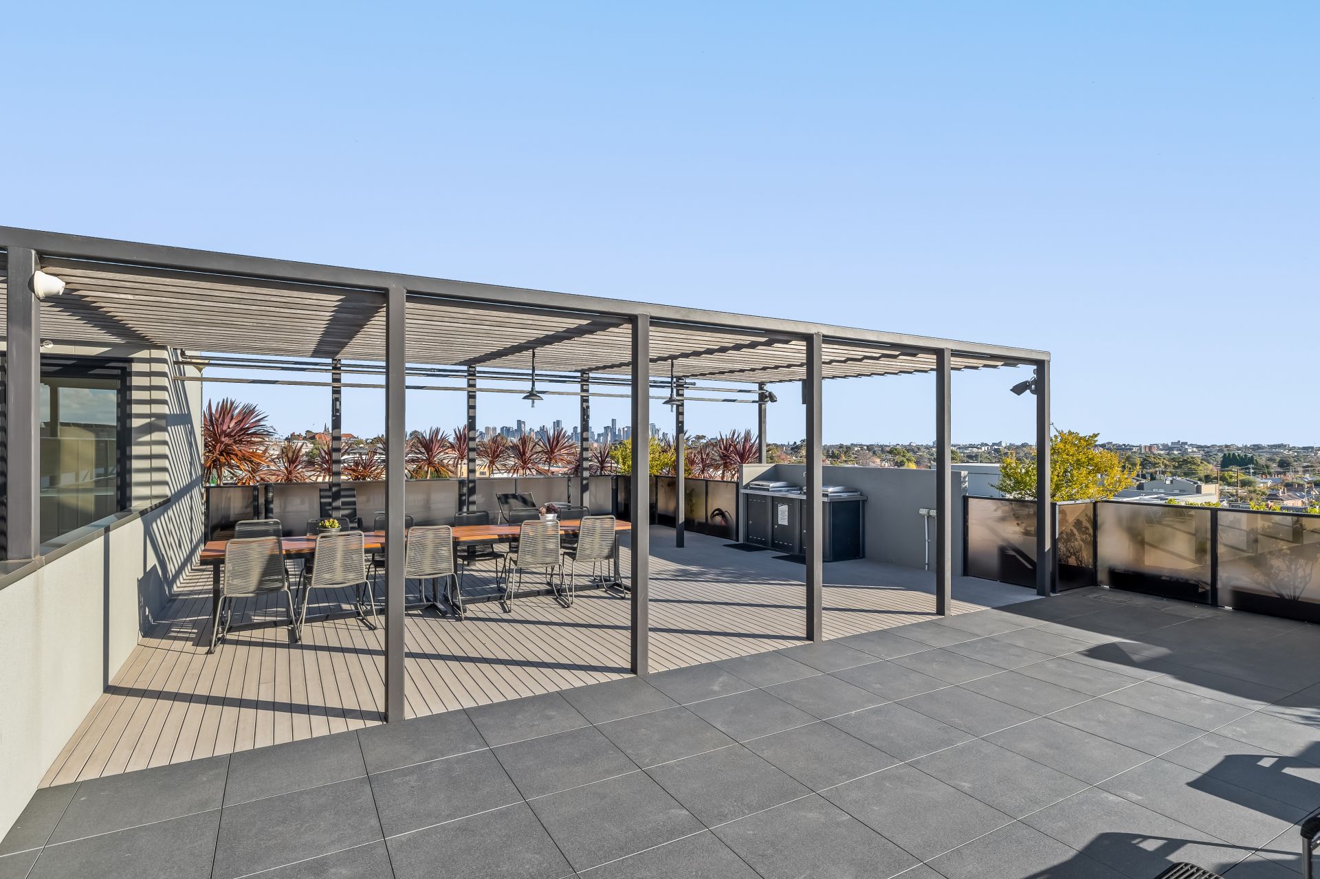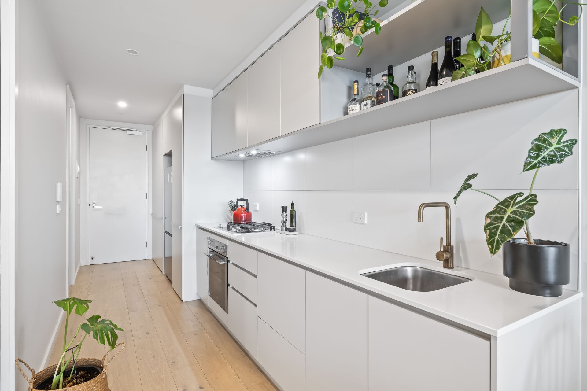 A welcoming entrance foyer separates sleeping and living zones perfectly and smartly places a European laundry & linen cupboard away from a stylish and private bathroom suite. Floor to ceiling glass maximises the light & space throughout the open plan living area and kitchen which are both complemented by the northern ray of sunshine, which is easily able to shine on through with no interruptions on this envied level 5 position, with direct access onto this buildings community rooftop BBQ retreat.